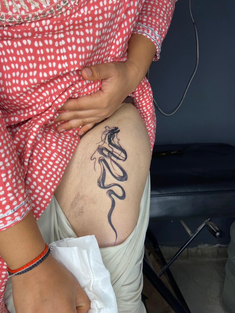 This is my first tattoo for which I was very scared but I am very grateful to Dev, he is very professional and kept me very comfortable throughout. He completed my tattoo in 6 hours. He gave his 200% when my tattoo was finally ready then it is beyond my imagination.